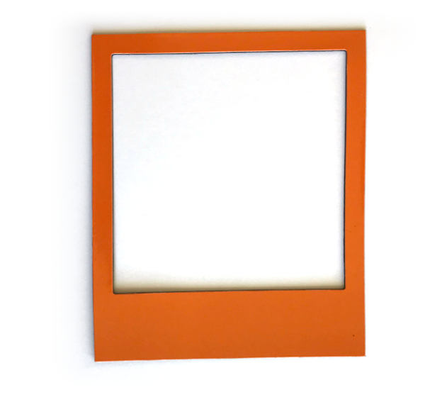 Cadre photoMagnétique, orange, souple, donne à vos photos un air de Polaroid. Il est possible d'écrire dessus avec des stylos pour tableau blanc.