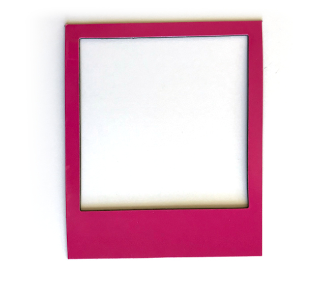 Cadre photoMagnétique, rose, souple, donne à vos photos un air de Polaroid. Il est possible d'écrire dessus avec des stylos pour tableau blanc.