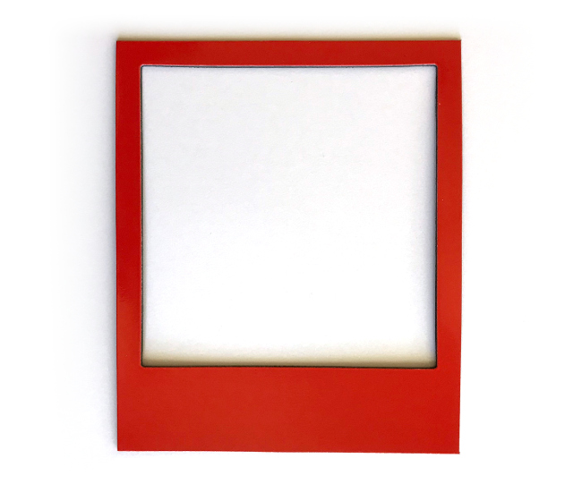 Cadre photoMagnétique, rouge, souple, donne à vos photos un air de Polaroid. Il est possible d'écrire dessus avec des stylos pour tableau blanc.