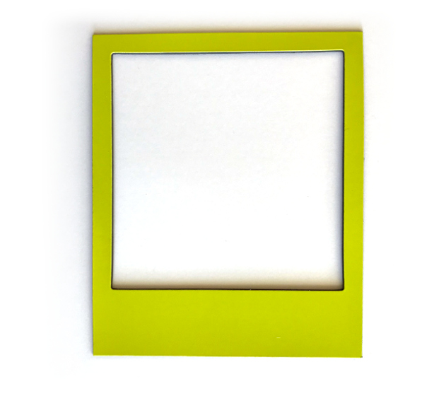 Cadre photoMagnétique, jaune, souple, donne à vos photos un air de Polaroid. Il est possible d'écrire dessus avec des stylos pour tableau blanc.