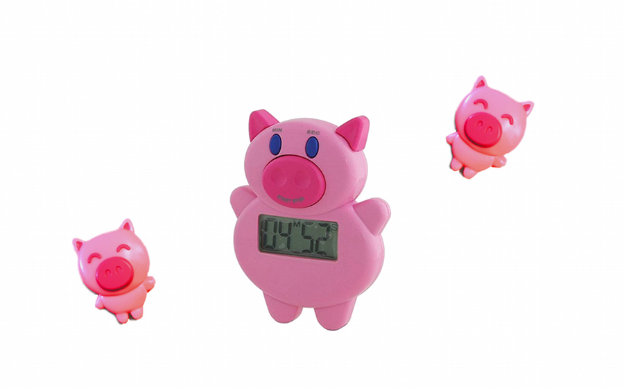 Minuteur + aimantsEn forme de cochons, magnétique, éléctronique, rose